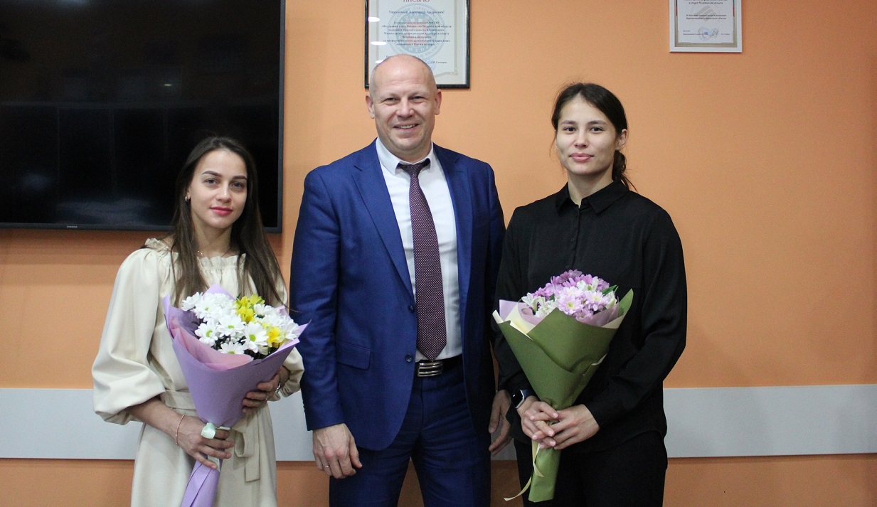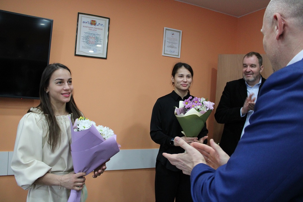 Александр Андреевич Гриб поздравил спортсменок Челябинской области с успешным выступлением на чемпионате России и вручил цветы Сабине Гилязовой и Дине Гизатулиной.