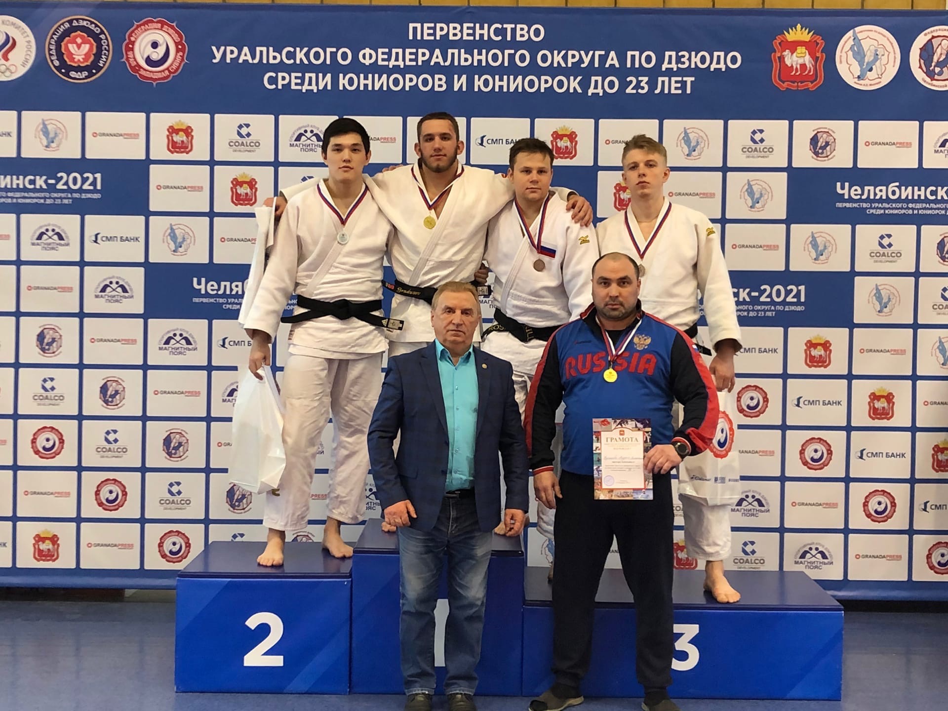 Победителями первенства УрФО стали Асхаб Хаджимурадов (81 кг) и Арафат Боташев (100 кг). «Серебро» у Алексея Синицына (100 кг) и Данилы Сиряка (свыше 100 кг). «Бронза» у Романа Макагонова (81 кг), Артёма Артемьева и Кирилла Рошка (оба – 90 кг).