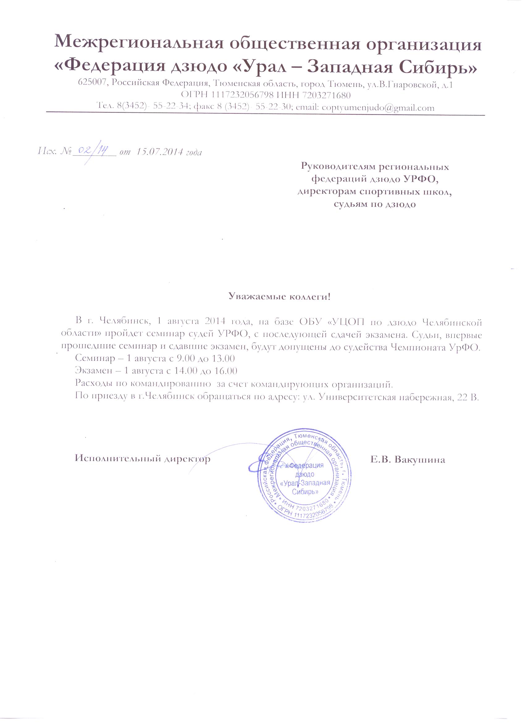 Семинар судей и сдача экзамена состоится 1-го августа. 2-го августа судьи примут участие в судействе на чемпионате УрФО.