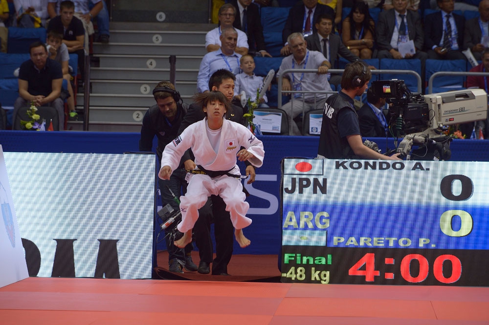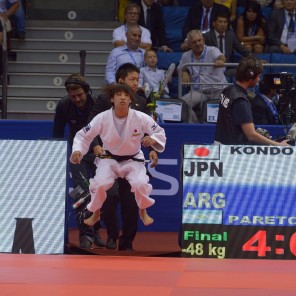 Напомним, в первый день ЧМ-2014 были разыграны два комплекта наград. Чуть ранее чемпионкой мира в весе до 48 кг у женщин стала японка Ами Кондо, победившая в финале весовой категории до 48 кг у Паулы Парето из Аргентины.