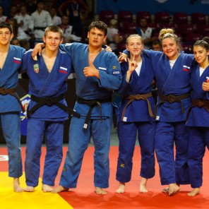 Российские дзюдоисты нанесли поражение соперникам из Грузии со счетом 4:0, однако с таким же результатом уступили в полуфинале турецкой команде. В "малом финале" наши соотечественники взяли верх над венграми (4:1), добыв бронзовые медали. Второй комплект "бронзы" достался голландцам. "Золото" завоевали турки, которые превзошли румын.