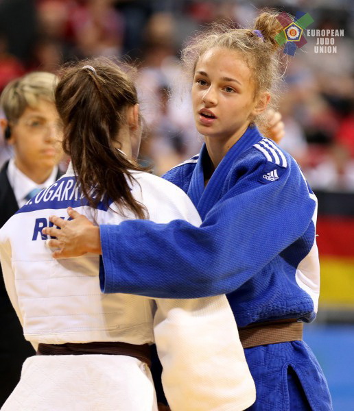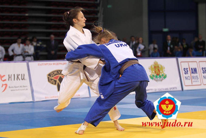 В первый день соревнований россияне выиграли пять медалей. Одну из них, серебряного достоинства добыла в весе до 44 кг Юлия Огаркова из Челябинска. Наша землячка уложила на татами турчанку Акюз Чичек (за 3 минуты 20 секунд), по очкам одолела Луис Петит из Бельгии и победительницу первенства Европы-2014 итальянку Михаэлу Фиорини (в полуфинале). В решающем поединке за "золото" Огаркова проиграла болевым приёмом на руку уникальной украинской спортсменке Дарье Белодед. Ей только в октябре исполнится 15 лет (!). Отец - Геннадий Белодед, один из самых титулованных дзюдоистов в истории страны - двукратный чемпион Европы (2001, 2003), бронзовый призёр чемпионата мира-2005, участник трёх Олимпиад. Мать - Светлана Кузнецова, мастер спорта СССР, старший тренер сборной Украины среди девушек. В этом году Дарья выиграла три Кубка Европы, а в столице Болгарии всех четырёх соперниц победила досрочно, болевым приёмом.