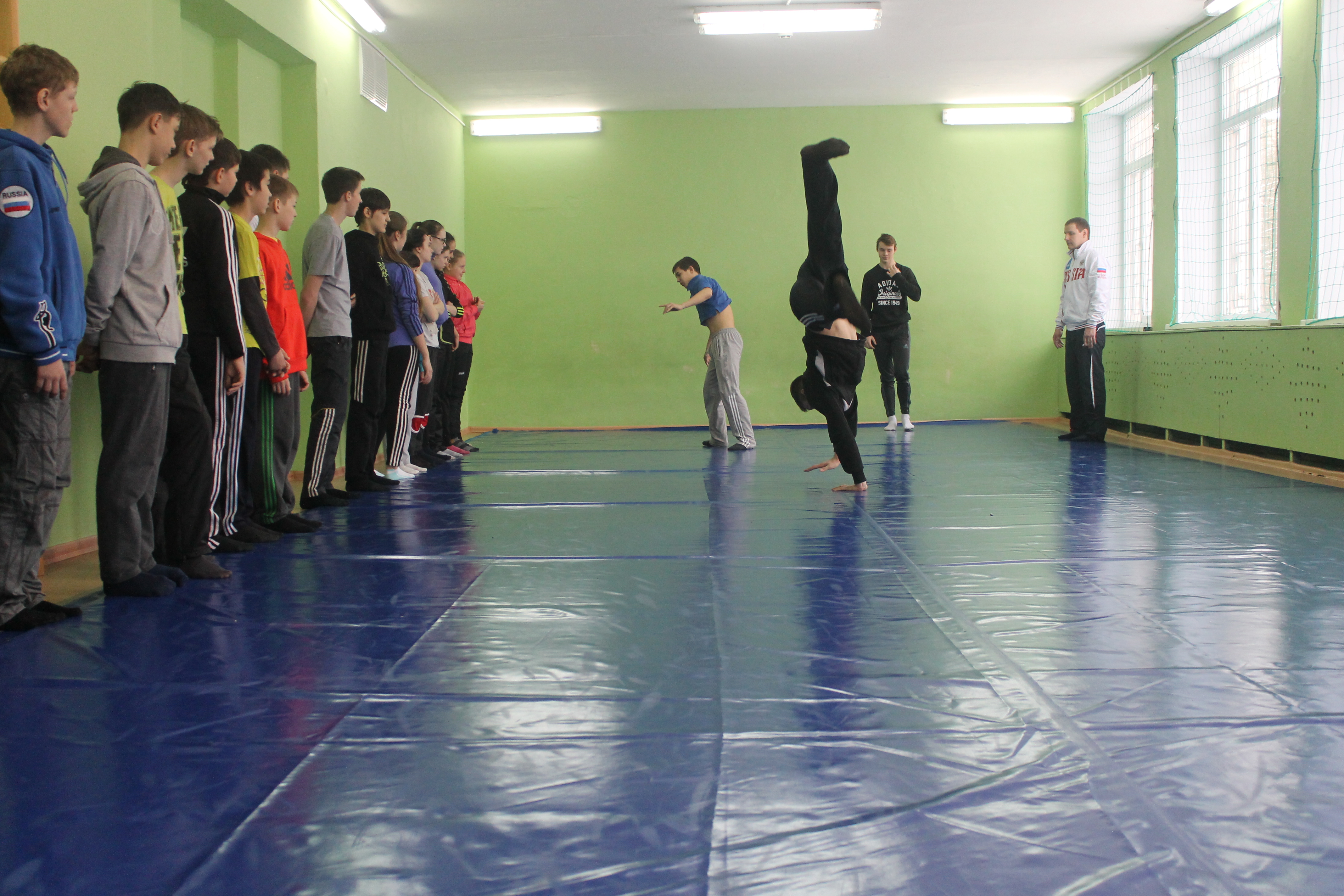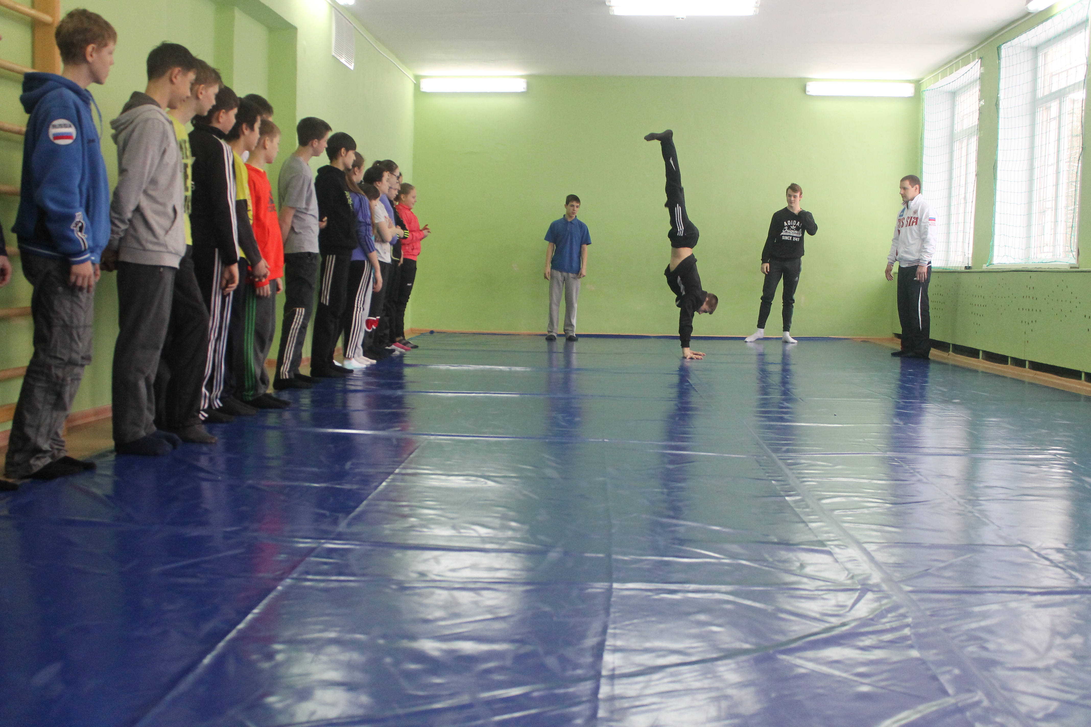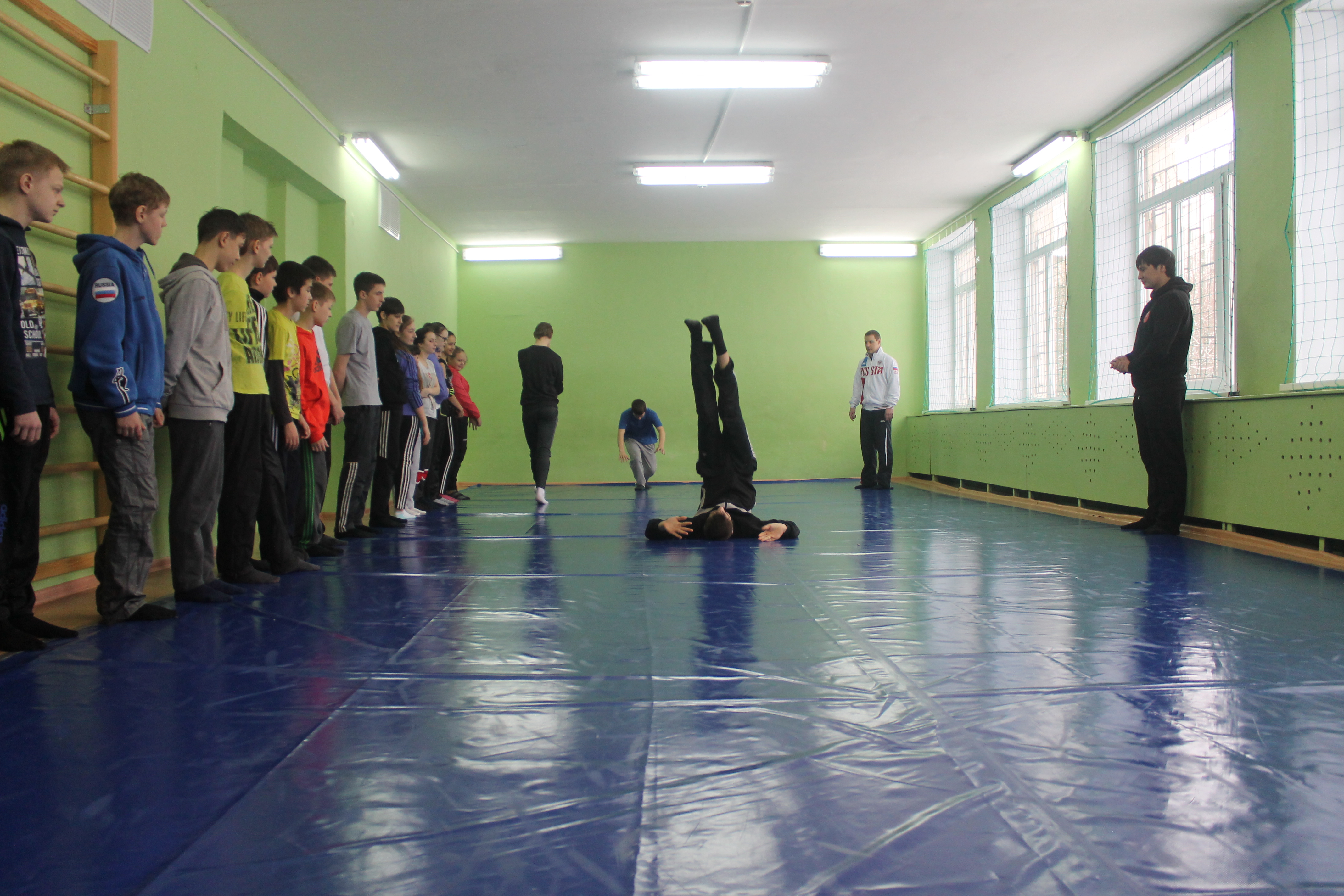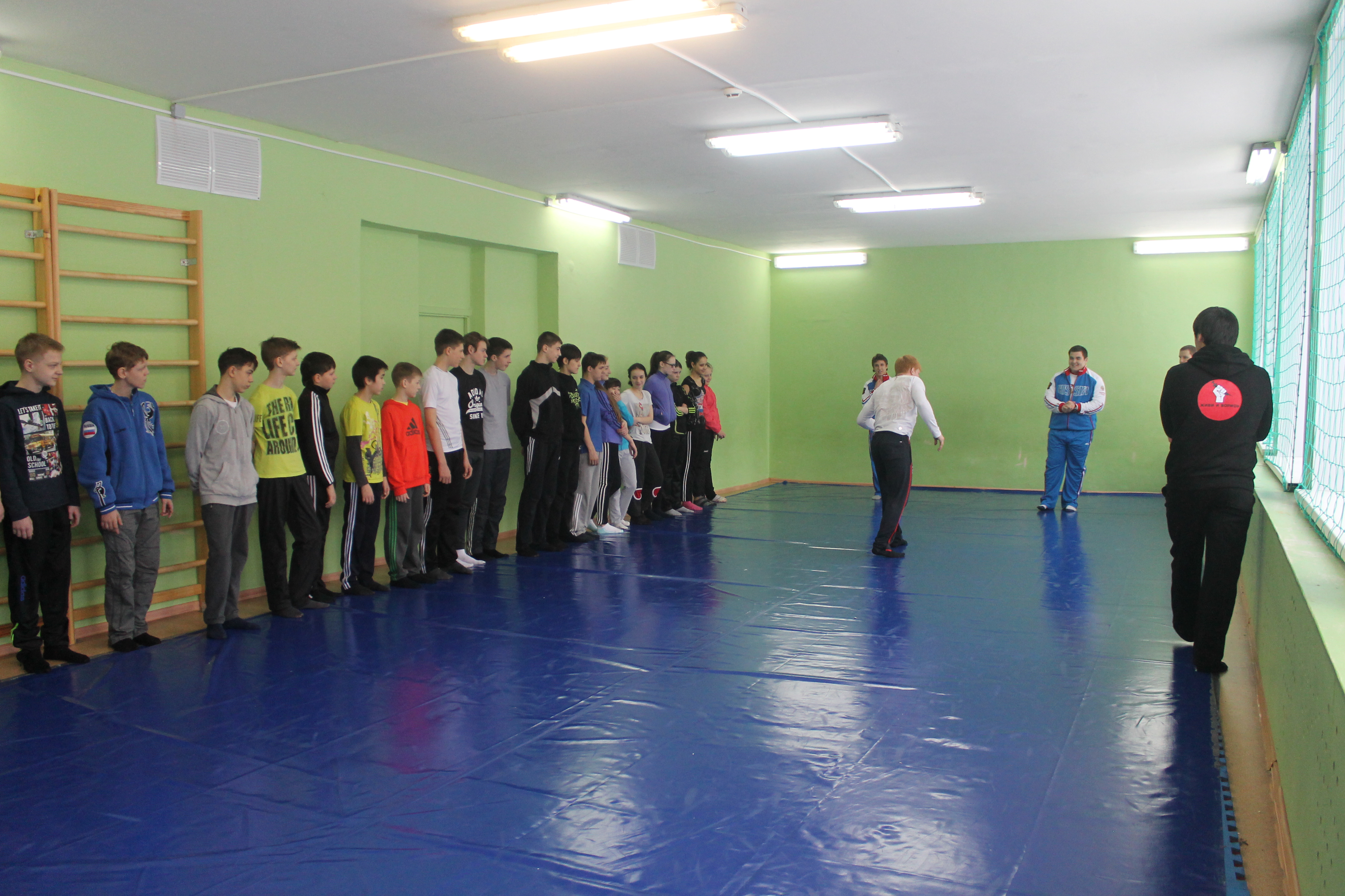 На школьном уроке ученики увидели не только как разминаются профессиональные спортсмены. В импровизированном поединке сошлись победитель первенства области по греко-римской борьбе Данил Губанов и третий призёр Всемирной гимназиады по дзюдо Александр Куликовских. Дружеская встреча завершилась вничью.