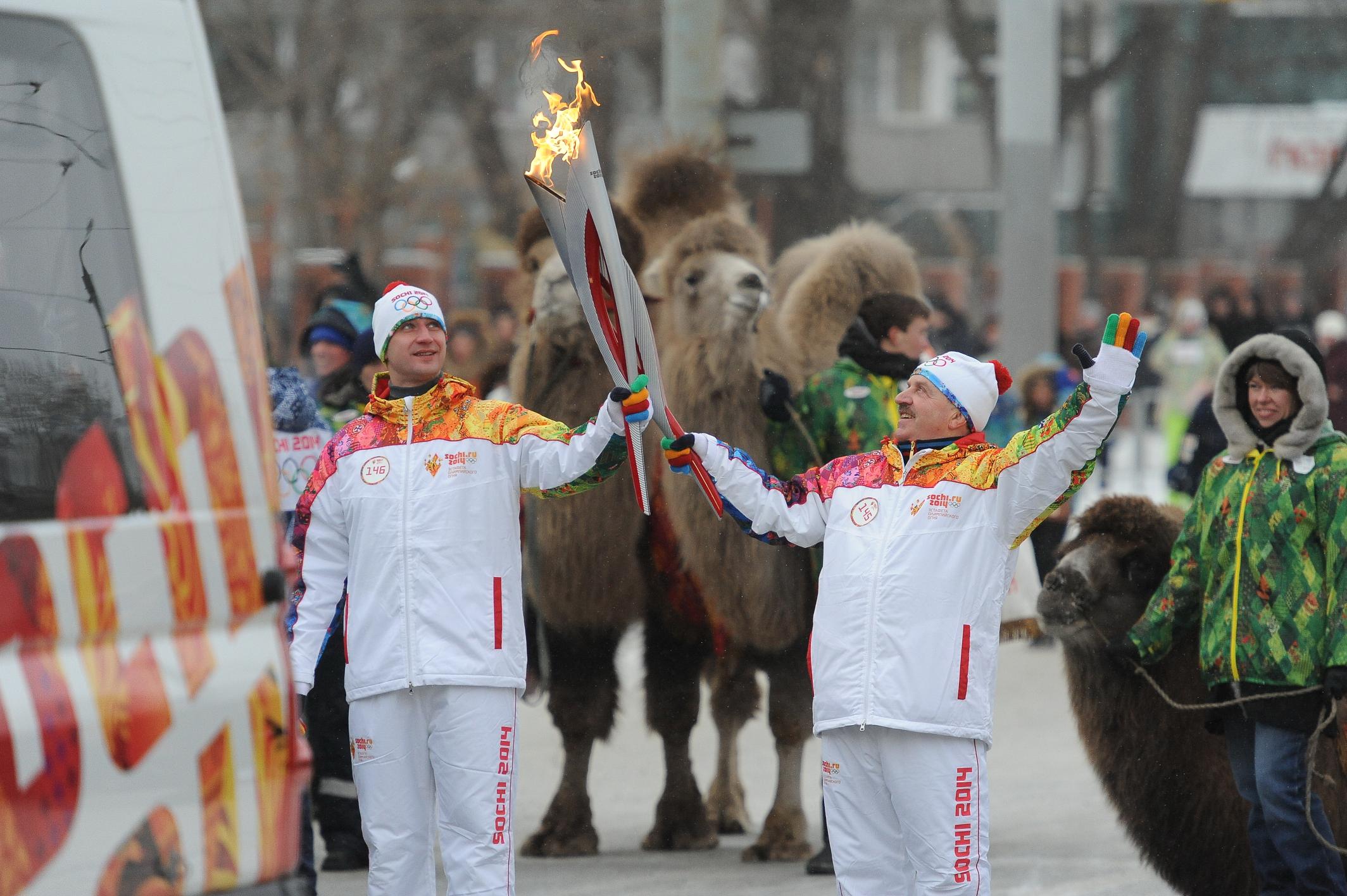 Смотрите интервью с заслуженным тренером России Александром Миллером и олимпийским чемпионом по дзюдо Мансуром Исаевым, а также фрагмент видео их этапов на эстафете олимпийского огня в Челябинске 17-го декабря 2013 года.