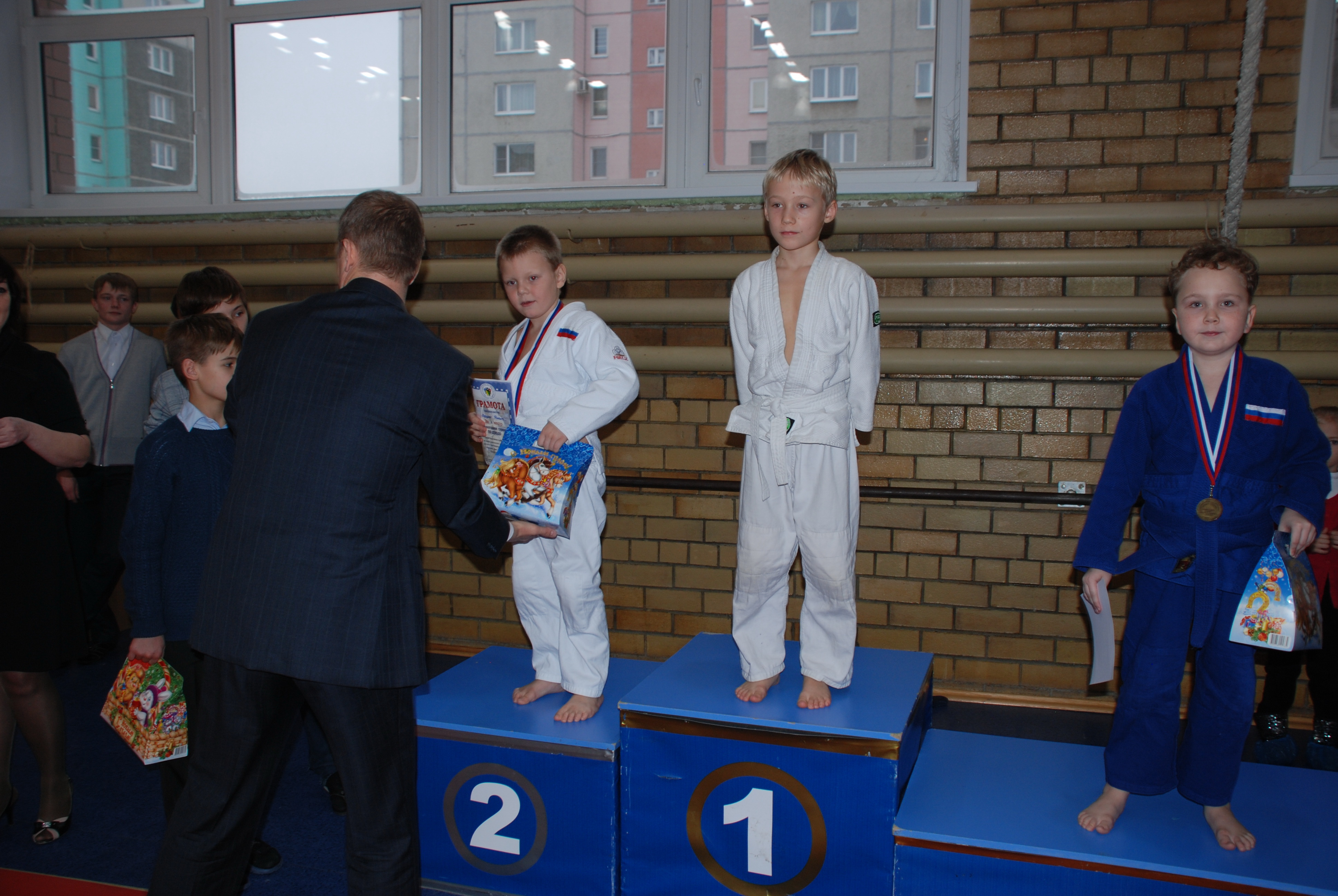 Воспитанники тренеров Сергея Лепихина, Эдуарда Довганя, Михаила Бусыгина, Андрея Цивилёва и Владимира Гусельцева боролись по упрощённым правилам, в партере. Продолжительность поединка составила 2 минуты. Медали и сладкие призы достались всем без исключения юным спортсменам. Как и в прошлом году, маленьких дзюдоистов развлекали дед Мороз и Снегурочка, которые устроили для них конкурсы и хороводы прямо на татами.