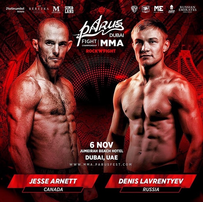 Канадца Джесси Арнетта, по прозвищу Большой Кот, который не проигрывал на профессиональном уровне с мая 2019 года. Прервал эту победную серию на турнире международной организации смешанных единоборств PaRUS Fighting Championship в Дубае представитель екатеринбургского клуба «Архангел Михаил» и Федерации дзюдо «Урал-Западная Сибирь». Одержав седьмую досрочную и двенадцатую в карьере победу, Денис Лаврентьев стал чемпионом PaRUS MMA в легчайшем весе до 61 килограмма.