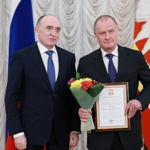 Почетную награду заслуженному тренеру России вручил губернатор Челябинской области Борис Дубровский.