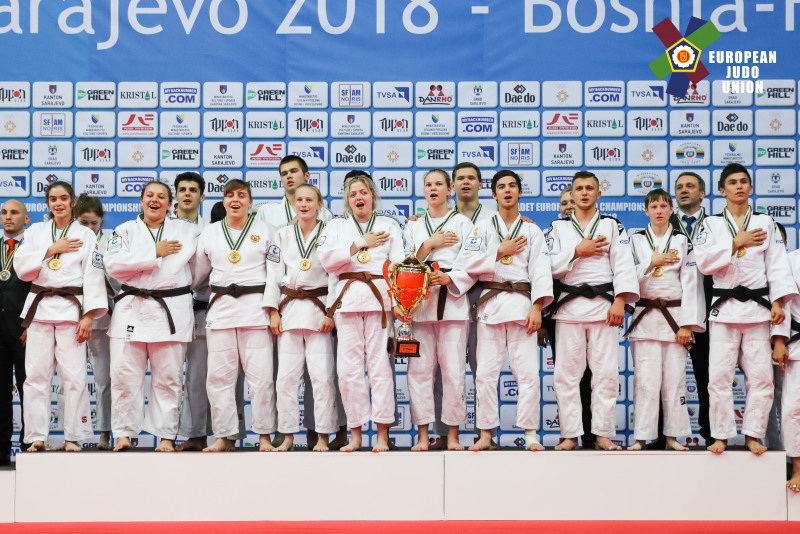 В первом в истории европейского юношеского дзюдо командном турнире среди смешанных сборных в столице Боснии и Герцеговины приняли участие 15 национальных дружин. Российская команда – победительница первенства мира-2017 - начала борьбу со второго круга, одолев соперников из Венгрии со счетом 5:1. В полуфинале были повержены румыны (5:3). А решающих поединках наши соотечественники нанесли поражение голландцам (5:2). Причем, решающую точку в финале поставила победительница первенства России-2017 Анастасия Холодилина из Копейска. Она вырвала победу в дополнительное время у серебряной медалистки Евро-2018 в личном первенстве Марит Кампс. Командное "золото" получила и вторая представительница Челябинской области в тяжелом весе Виктория Соколова. "Серебро" досталось сборной Нидерландов, "бронза" - командам Турции и Румынии.