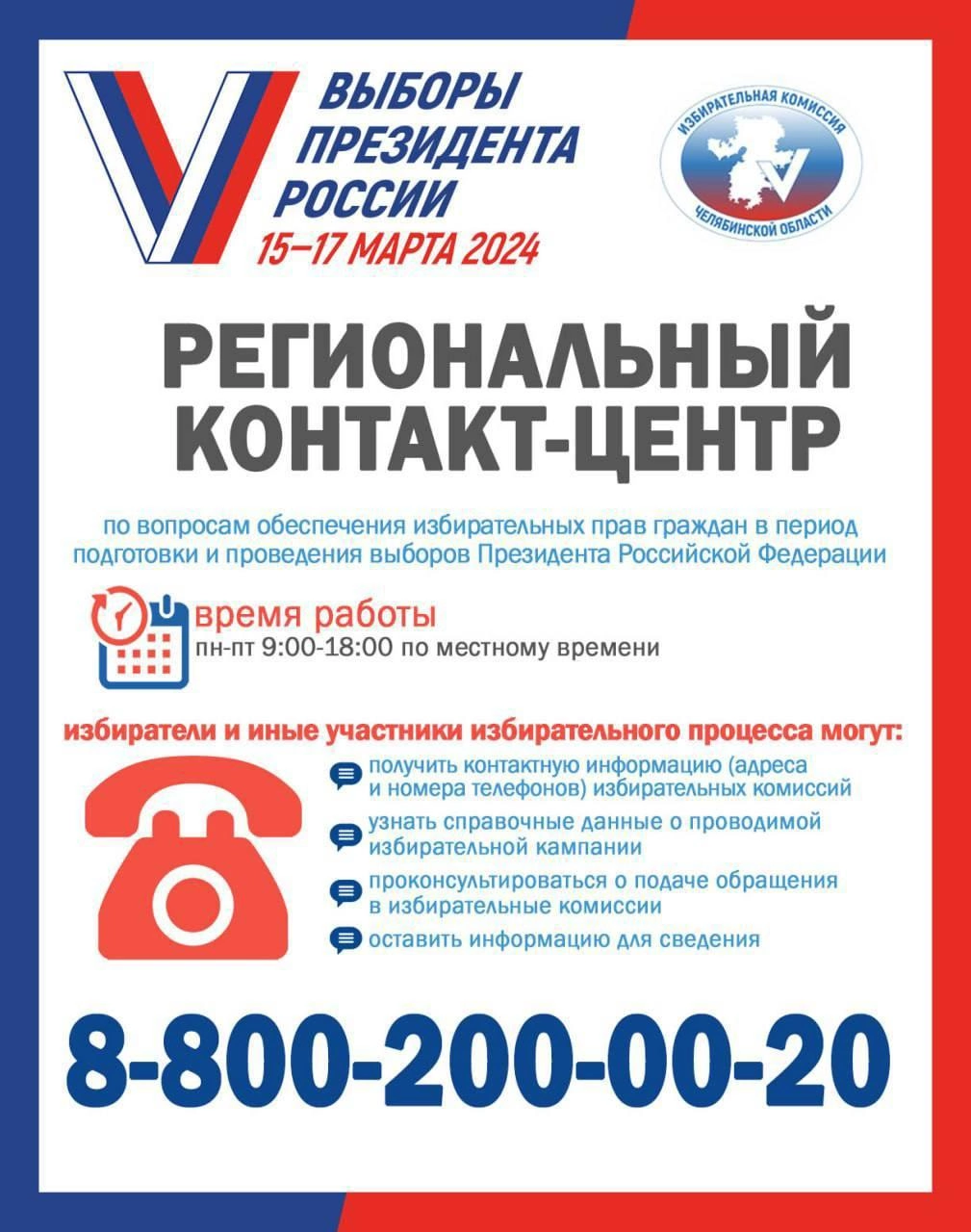 В избирательной комиссии Челябинской области работает «Горячая линия». Обратиться можно по номеру телефона:
