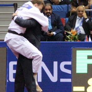 Продолжил он удивлять и вечерней части программы, победив в тяжелейшем поединке Лойца Пьетри. Однако на финал сил ему не хватило. Но надо отдать должное и грузину Автандилу Црикишвили. Победив «чистым броском» в полуфинале Шмитта, он и в решающем поединке совершил красивый технический прием, оцененный на «ваза-ари». Канадец пытался менять тактику и технику, но все безуспешно – в защите Црикишвили действовал безупречно.