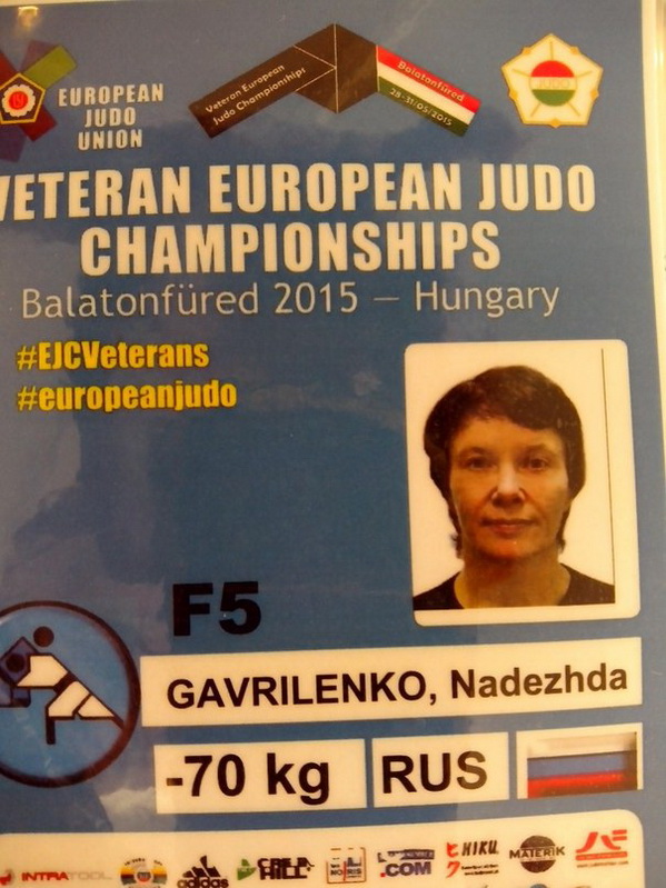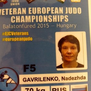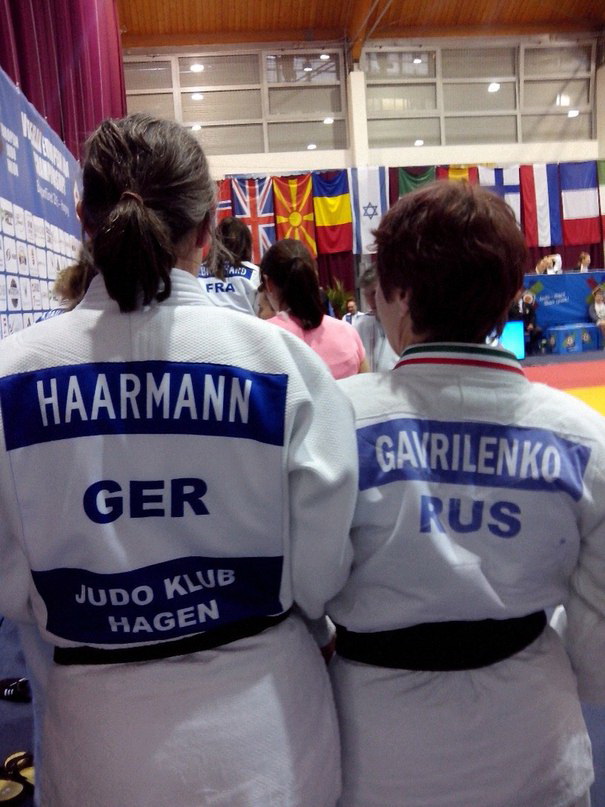 В весе до 70 кг Надежда дважды уступила старой знакомой немке Андреа Хаарманн, получив в итоге "серебро". Для сравнения: Гавриленко начала заниматься дзюдо всего лишь 5 лет назад, в возрасте 47 лет(!) Стаж занятий дзюдо у её соперницы, оказывается, 36 лет (!). Андреа борется с 1979 года, причём также выступает в состязаниях по тхэквондо. Является многократной чемпионкой Европы.