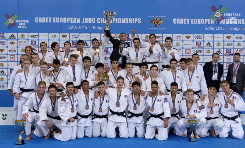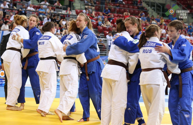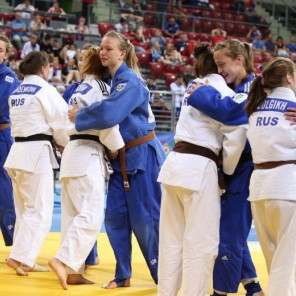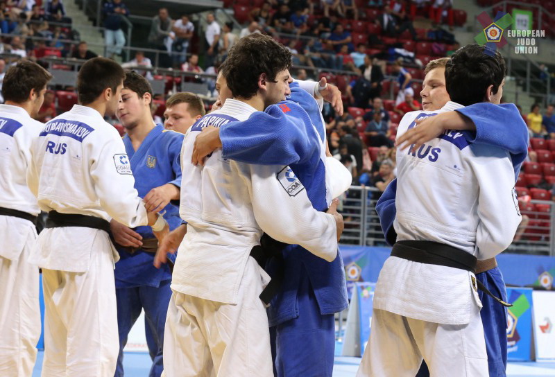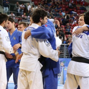 Российские дзюдоисты в первом круге состязаний нанесли поражение болгарам со счётом 3:2, но затем с таким же результатам уступили французам. В "утешительном" турнире подопечные Владимира Гладченко победили соперников из Кипра (5:0) и Сербии (4:1). В "малом финале" за бронзовые медали наши ребята взяли верх над украинцами (4:1).