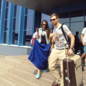 Первым в фойе зала ожидания челябинского аэровокзала появился Владимир Иванов. Да не один, а в сопровождении модельной внешности брюнетки. Приняв поздравления от чиновников, он затем пообщался с журналистами: «По значимости Универсиада –это второй турнир после Олимпийских игр. Будем дальше развивать свой успех и постараемся сделать себе такую же стартовую площадку и на Олимпийских играх».