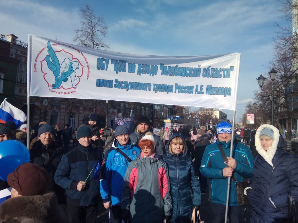 Несмотря на минусовую температуру воздуха, на праздник пришли сотни людей, в том числе сотрудники Центра олимпийской подготовки по дзюдо Челябинской области имени заслуженного тренера России А.Е. Миллера.