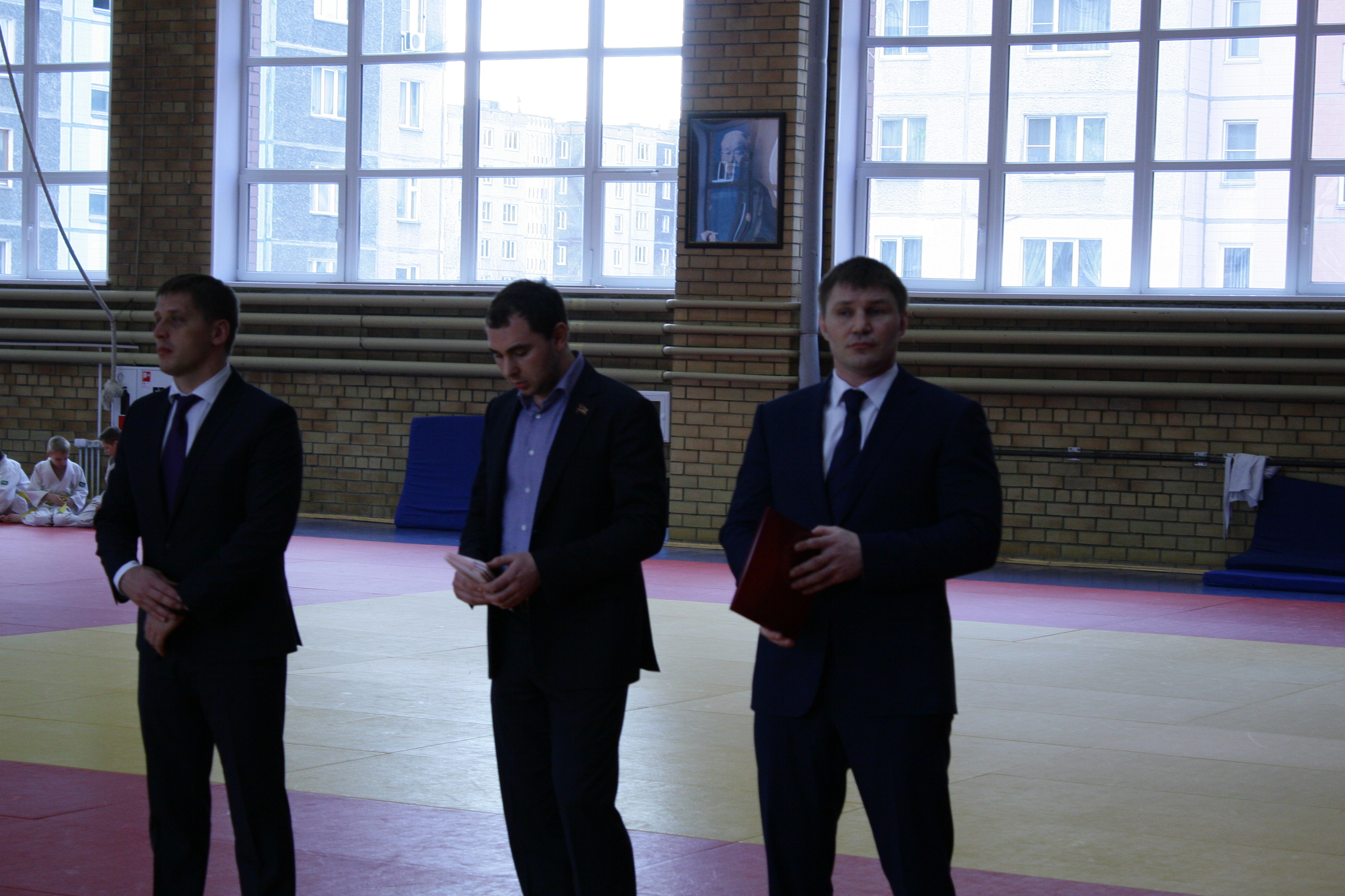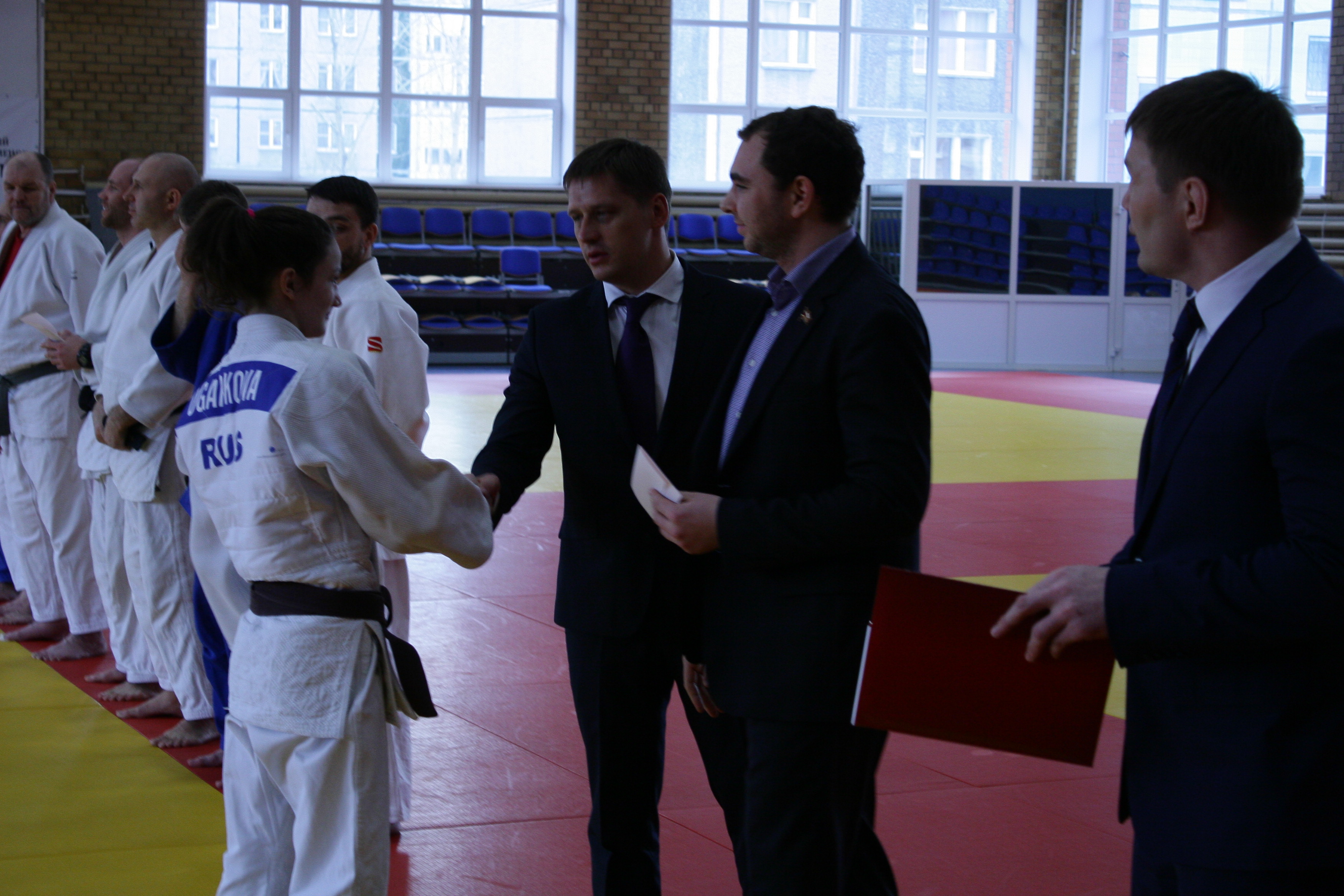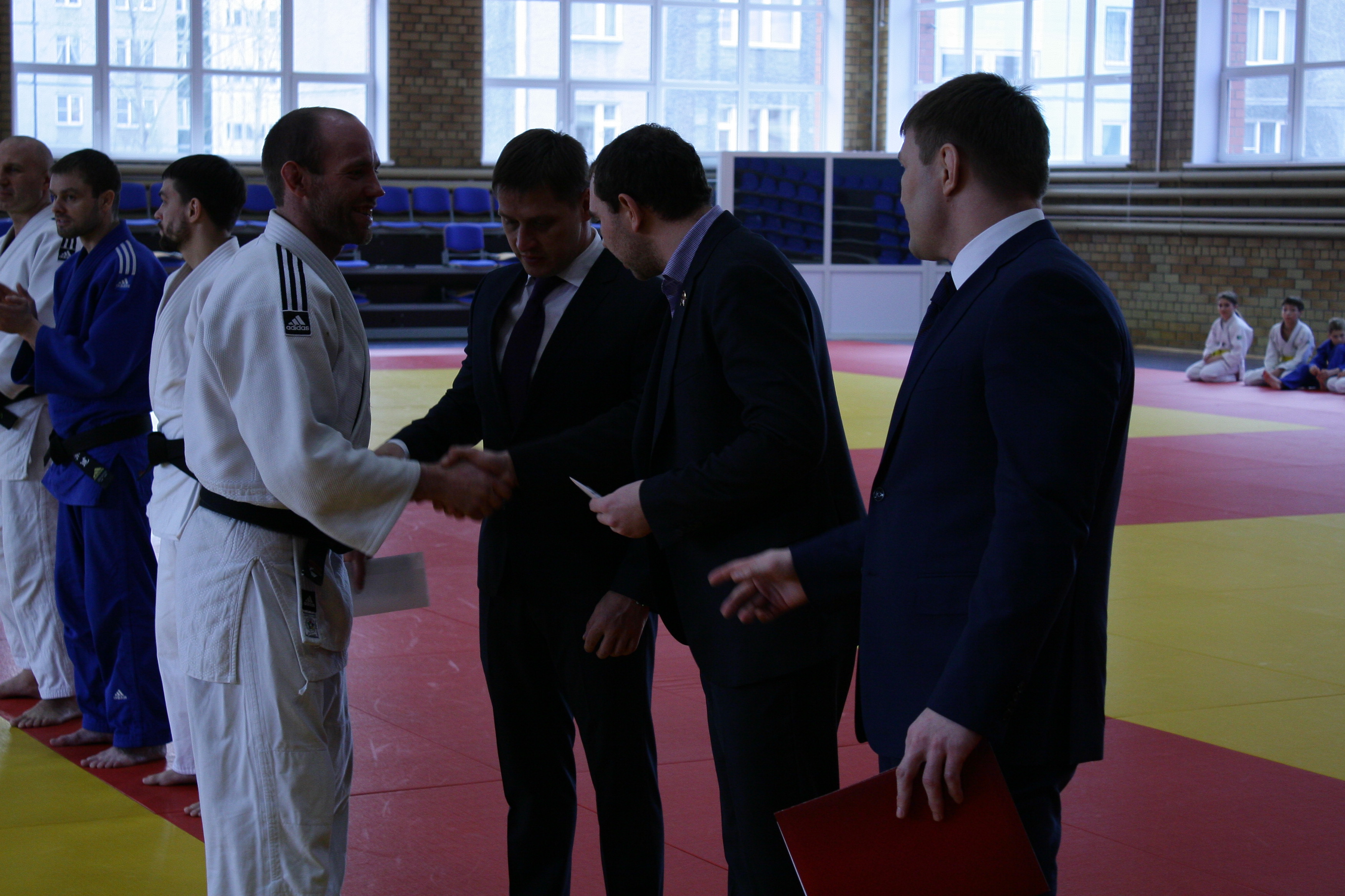 На построении, в начале дневной тренировки вице-президент федерации дзюдо Челябинской области Денис Лапотышкин, директор УЦОП, заслуженный мастер спорта России Иван Першин и депутат Законодательного собрания Челябинской области, генеральный директор ООО «Бовид» Михаил Видгоф поздравили с большим успехом победителя первенства страны Александра Михейчика из Южноуральска (46 кг), его первого тренера Виталия Дадонова, бронзового призёра первенства России Юлию Огаркову из Катав-Ивановска (44 кг) и наставника спортсменов старшего тренера УЦОП, мастера спорта России Андрея Цивилёва.