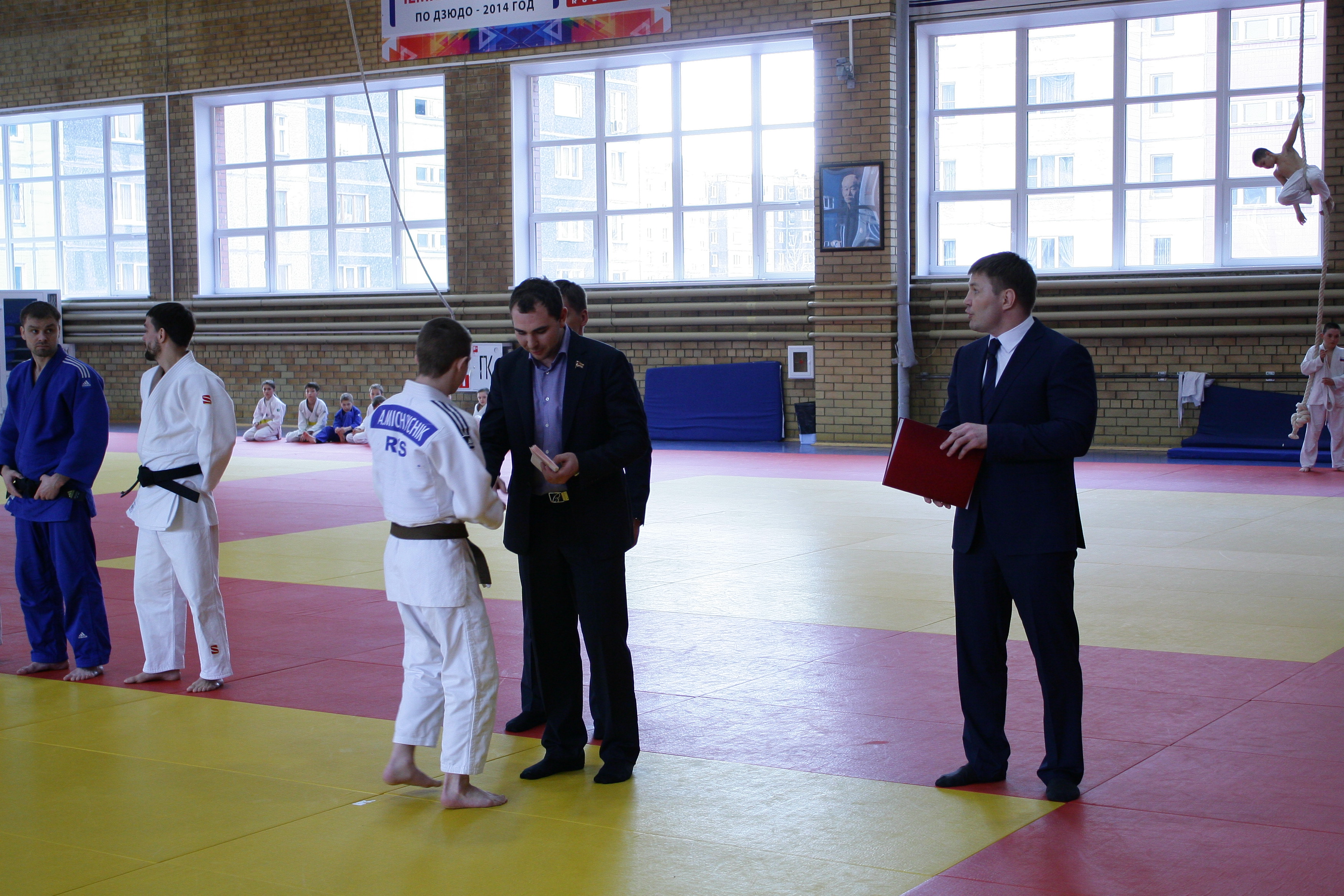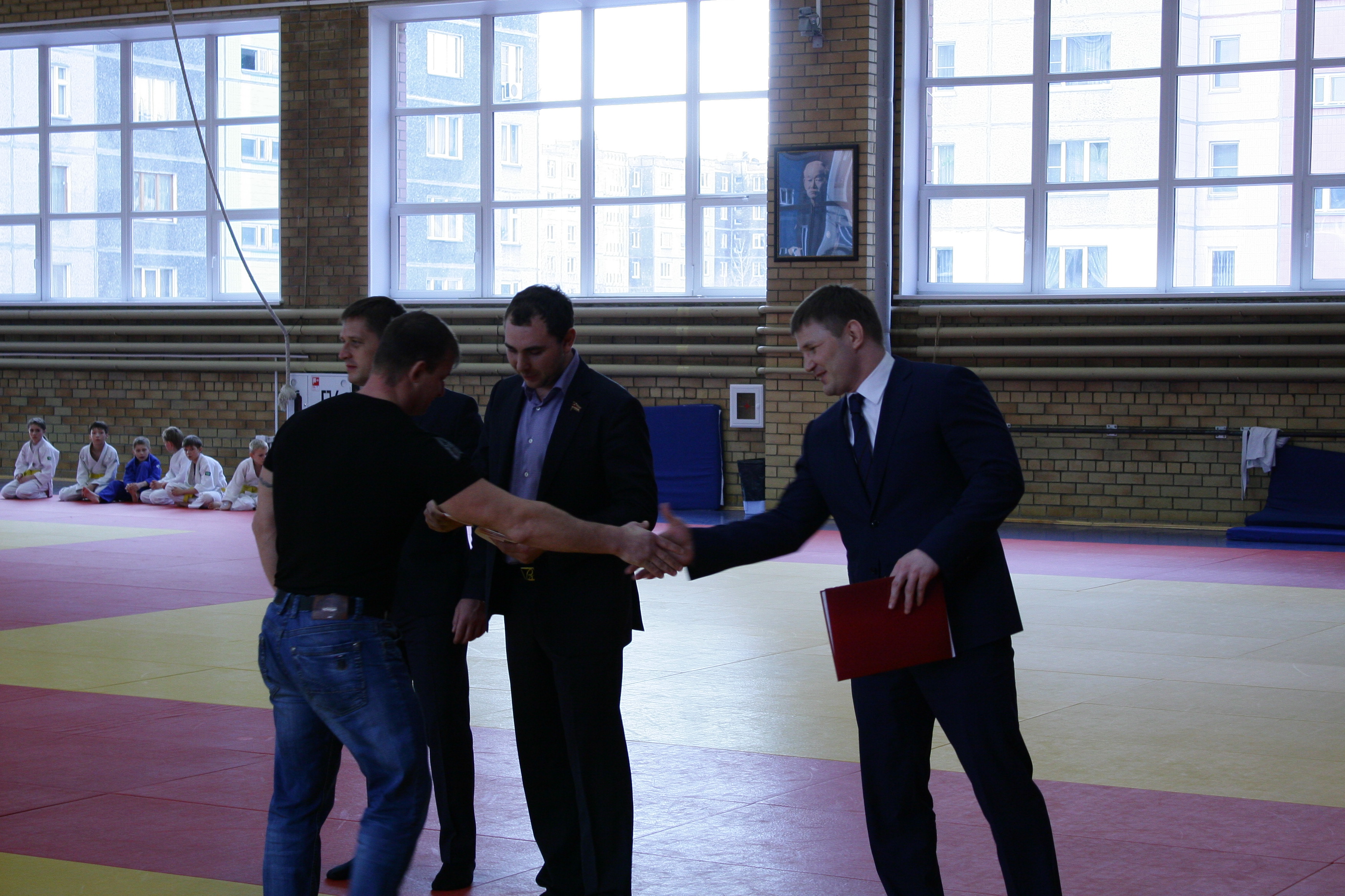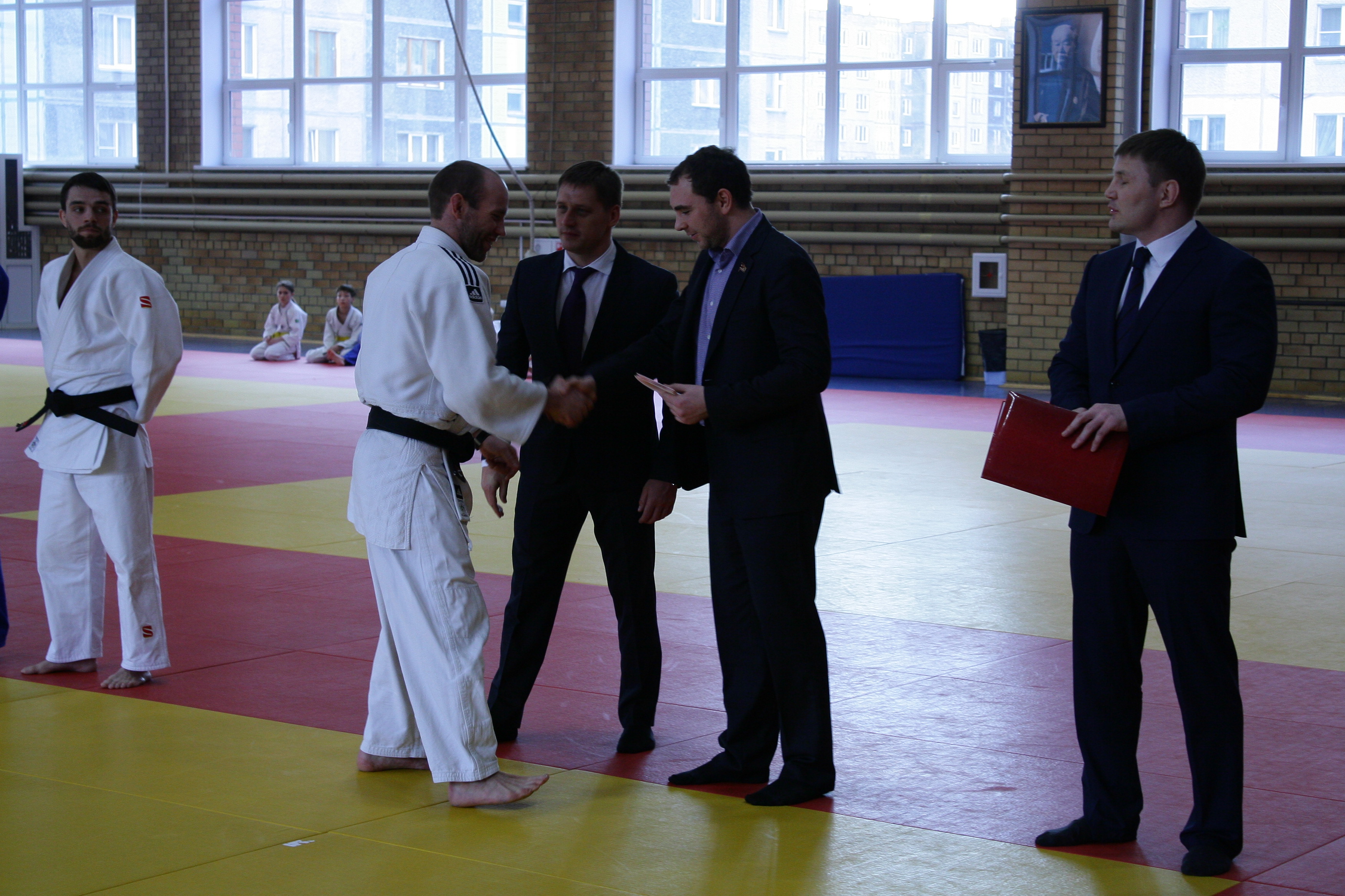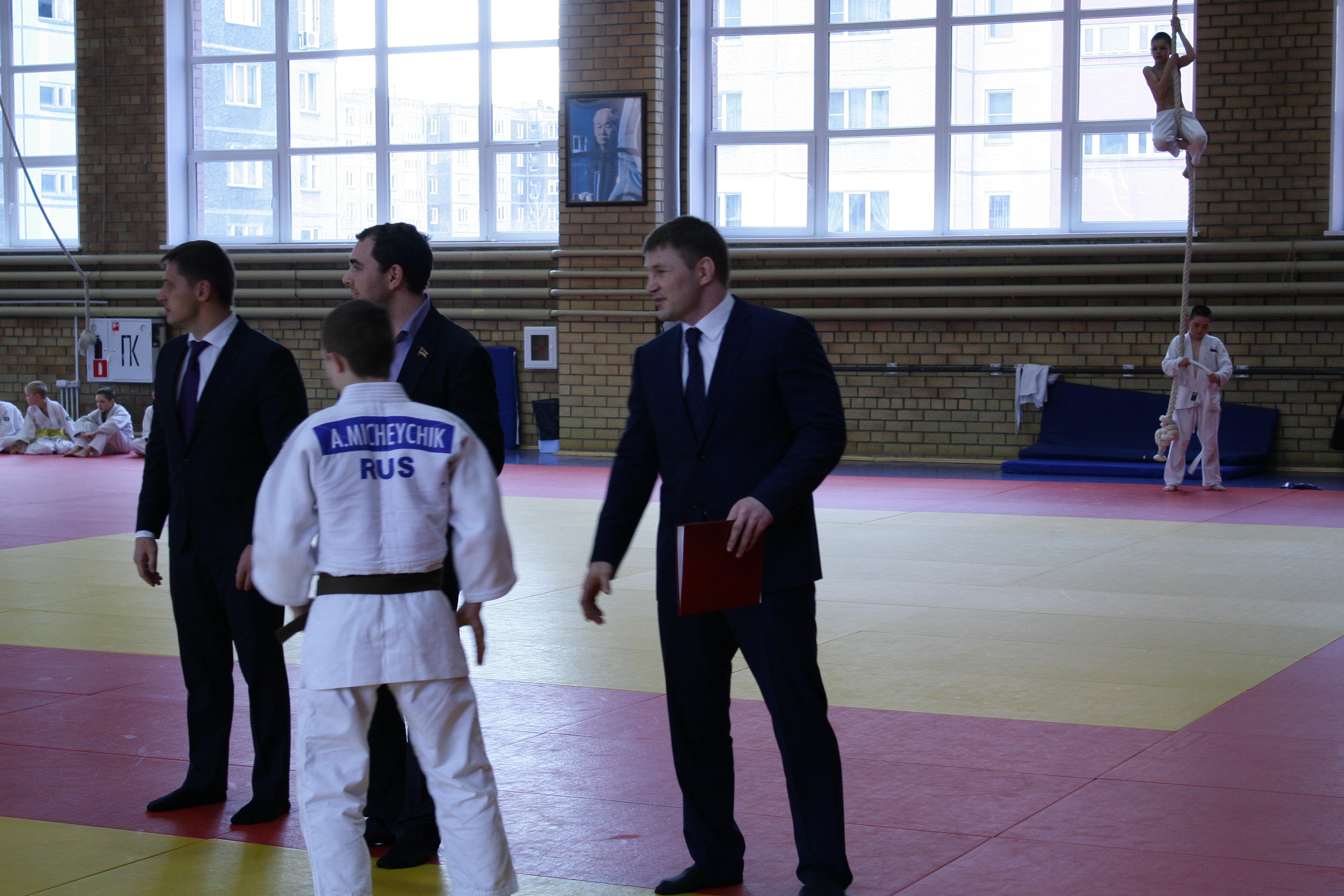 На построении, в начале дневной тренировки вице-президент федерации дзюдо Челябинской области Денис Лапотышкин, директор УЦОП, заслуженный мастер спорта России Иван Першин и депутат Законодательного собрания Челябинской области, генеральный директор ООО «Бовид» Михаил Видгоф поздравили с большим успехом победителя первенства страны Александра Михейчика из Южноуральска (46 кг), его первого тренера Виталия Дадонова, бронзового призёра первенства России Юлию Огаркову из Катав-Ивановска (44 кг) и наставника спортсменов старшего тренера УЦОП, мастера спорта России Андрея Цивилёва.