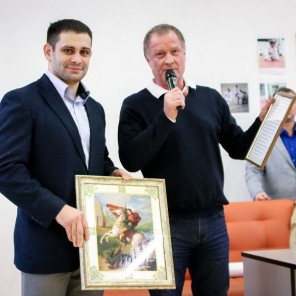 Поздравить звездного ученика со знаменательным событием приехали его наставники из спортивной школы олимпийского резерва города Трехгорный, заслуженные тренеры России первый тренер Денисова Владимир Федичкин и директор СДЮСШОР по дзюдо Владимир Зайцев, его заместитель Александр Шалаевский, заслуженные тренеры России главный тренер национальной сборной команды Дмитрий Морозов, вице-президент Федерации дзюдо России Дмитрий Черных и Хапез Искаков, коллеги-дзюдоисты.