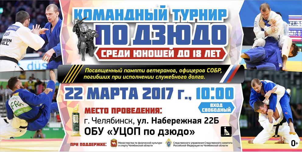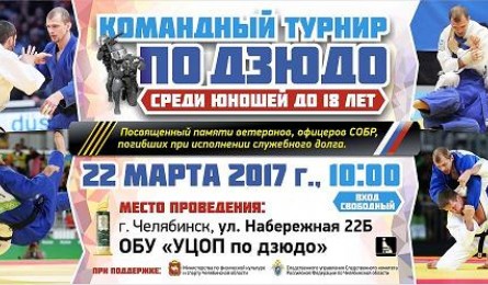 22 марта в Центре олимпийской подготовки по дзюдо Челябинской области состоятся Всероссийский командный турнир среди спортсменов до 18 лет (2000-2001 г.р.), посвященные памяти ветеранов СОБР, офицеров отряда специального реагирования, погибших при исполнении служебного долга.