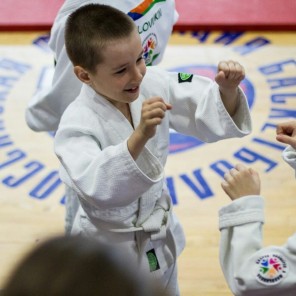 Самые маленькие дзюдоисты боролись по упрощенным правилам - за так называемые хвостики - ленточки, которые надо было выхвать у соперника. И такие состязания были для них игрой. Главным болельщиком и секундантом миниатюрной участницы Арины Калачевой был папа Виталий, который и записал ее в дзюдо. Юная дзюдоистка на равных спорила с мальчиком и один раз смогла его опередить..