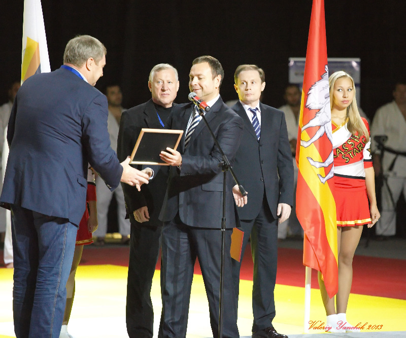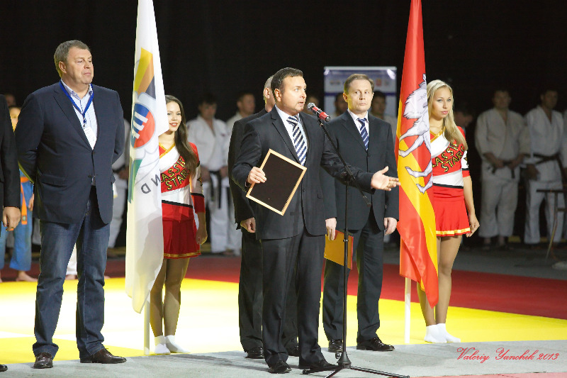 - Дзюдо в Челябинской области – это только высшие достижения, легендарная школа, которая воспитала победителей Олимпийских игр, чемпионатов мира и Европы. На сегодняшний день это такие известные спортсмены, как Кирилл Денисов и Мансур Исаев, которые прославляют Челябинскую область на татами, участвуя в соревнованиях международного уровня. И то, что в 2012 году в нашей области прошёл успешный чемпионат Европы, в следующем году мы будем принимать чемпионат мира по дзюдо, а сегодня, здесь в Магнитогорске, проходит чемпионат России среди ветеранов, говорит о том, что у южноуральской школы дзюдо есть свои традиции, и что Губернатор Михаил Валериевич Юревич, Правительство Челябинской области развивает и поддерживает этот вид спорта. В завершение моего выступления, разрешите мне выполнить почётную миссию: вручить федерации дзюдо Магнитогорска от имени Губернатора М.В. Юревича и областной федерации дзюдо в качестве подарка сертификат на татами, чтобы результаты в дзюдо были ещё лучше.