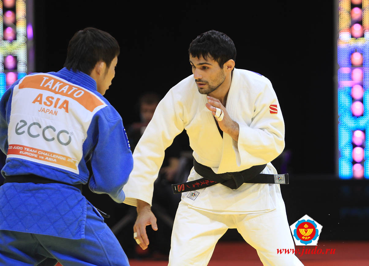 Второй принципиальный поединок – в наилегчайшем весе у мужчин (60 кг) между олимпийским чемпионом Арсеном Галстяном и чемпионом мира японцем Такато обострил интригу матча. Россиянин пропустил две атаки азиата на «юко», а затем и быстрый амплитудный бросок, стоивший «иппона». Тем не менее, схватка была красивой и зрители по достоинству оценили мастерство ее участников. Особую симпатию получил обидчик Арсена, протянувший нашему борцу руку, чтобы тот поднялся с татами, и дружески его обнял. Легкий, дружеский, позитивный настрой как внутри команд, так и по отношению к соперникам, отличал и другие встречи матча. Европейцы после поражения Галстяна мобилизовались и выиграли четыре схватки подряд: румынка Читу одолела японку Хашимото, украинец Зантарая прошел казаха Муканова, португалка Монтейро задушила монголку Доржсурен, а голландец Элмонт смог вытерпеть жесткий болевой от монгола Хашбаатара. Качнула чашу весов японка Абе, взявшая верх над представительницей Нидерландов Ван Эмден, и сделавшая счет 2:5. Еще один балл на счет азиатов положил узбек Имамов, сумевший выиграть у лидера мирового рейтинга грузина Чрикишвили – 3:5. Приблизила победу европейцев немка Варгас-Кох, победившая кореянку Ким – 6:3, ну а седьмой балл для своей команды завоевал грузин Липартелиани, расправившийся с корейцем Ли. Последнее в этот день, четвертое очко, для сборной Азии заработала дзюдоистка из страны утренней свежести Джеонг, не позволившая венгерке Йо порадовать команду досрочной победой. И все же преимущество европейцев «вылилось» в победу до срока. Голландец Грол, превозмогая себя, выиграл схватку у узбека Курбонова и, сойдя с татами, рухнул без сил. Оставшиеся поединки пусть и не имели уже принципиального значения, спортсмены нашего континента оставили за собой. Словенка Полавдер выбила из борьбы кореянку Ли, а российский чемпион Александр Михайлин красивым броском поставил золотую победную точку в поединке с киргизом Краковецким и во всем матче в целом.