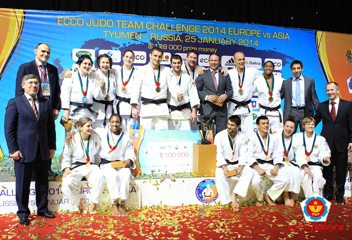 Престижный тяжелый трофей команде Европы и ее тренеру Эцио Гамбе вручили Губернатор Тюменской области Владимир Якушев и президент Европейского союза дзюдо Сергей Соловейчик. Победителям также достался и чек на 100 тысяч долларов США.