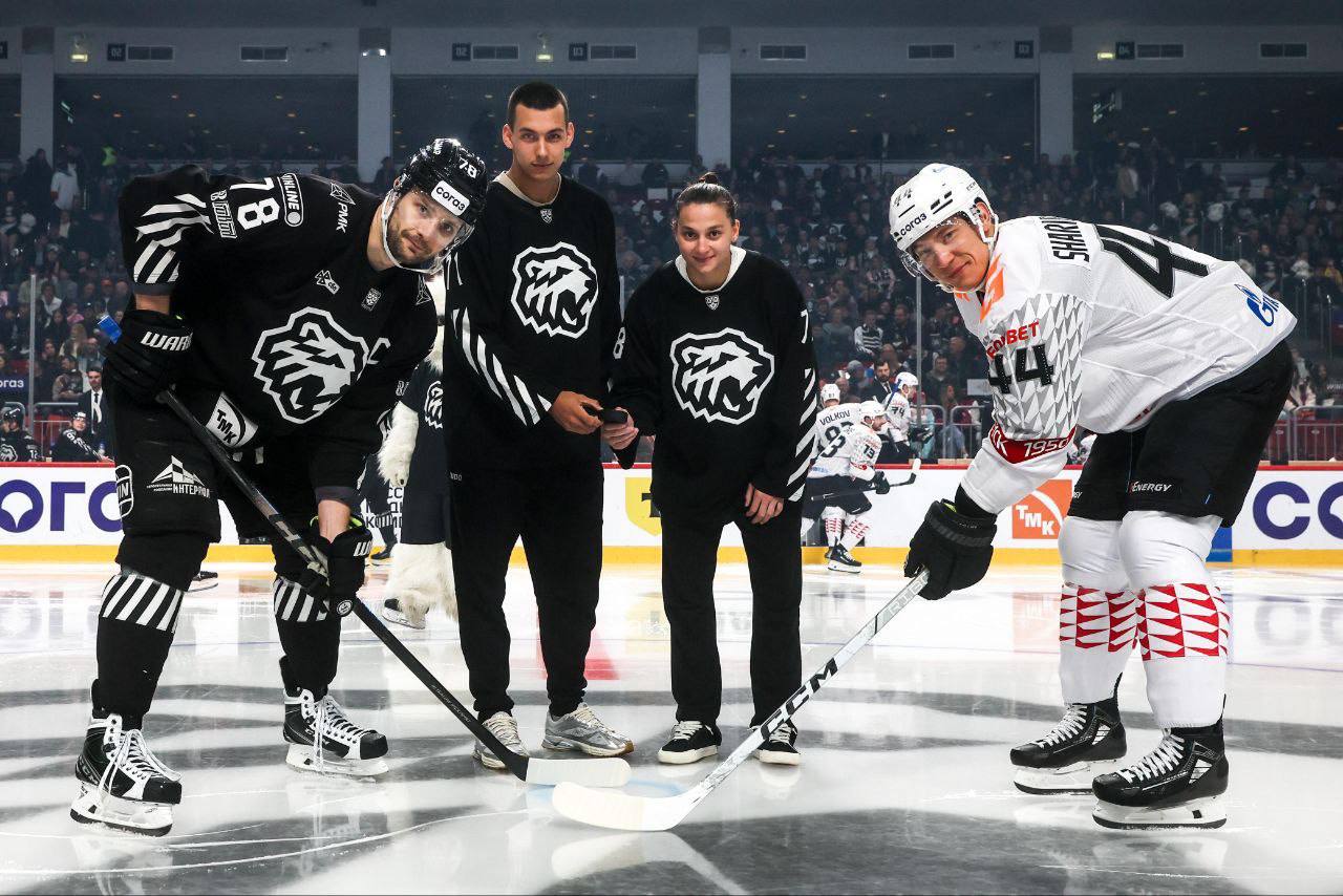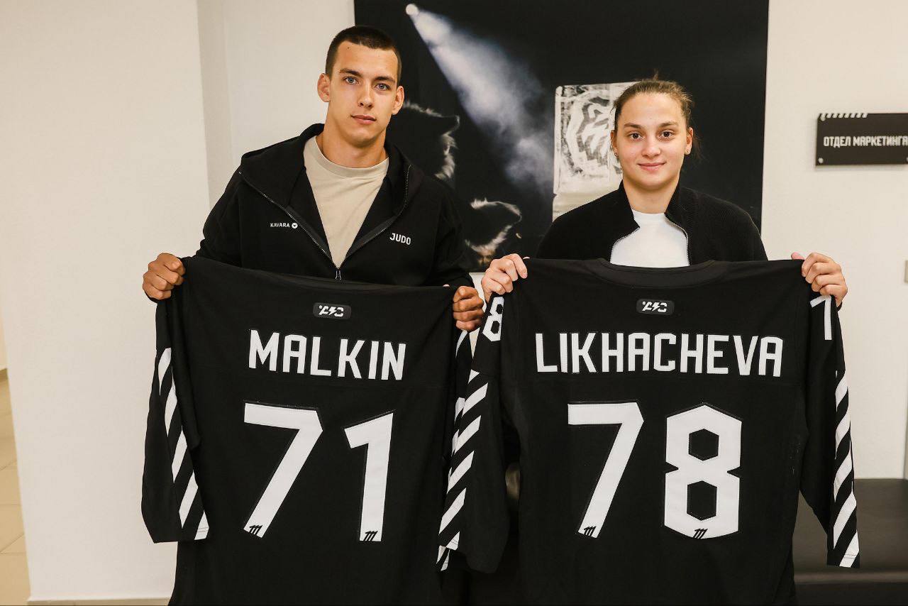 На матче ?Трактор - ?Авангрд чемпионка России до 23 лет, мастер спорта России по дзюдо Виктория Лихачёва и мастер спорта международного класса по дзюдо, серебряный призер международного турнира «Большой шлем» Егор Малкин приняли участие в вбрасывание ?