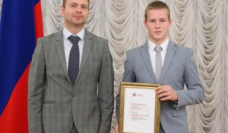 Глава региона Борис Дубровский вручил денежные сертификаты серебряному призёру чемпионата мира-2015 в Астане Кириллу Денисову и его тренеру Владимиру Зайцеву.