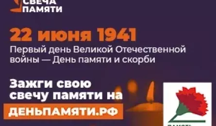 В России вновь стартовала онлайн-акция «Свеча памяти». До 22-го июня по всей стране будут зажигать свечи в память о тех, кто отдал жизнь во имя Великой Победы. Уже сейчас на сайте деньпамяти.рф каждый может зажечь свою виртуальную свечу. Присоединяйтесь к акции и скажите «спасибо» ветеранам Великой Отечественной войны!